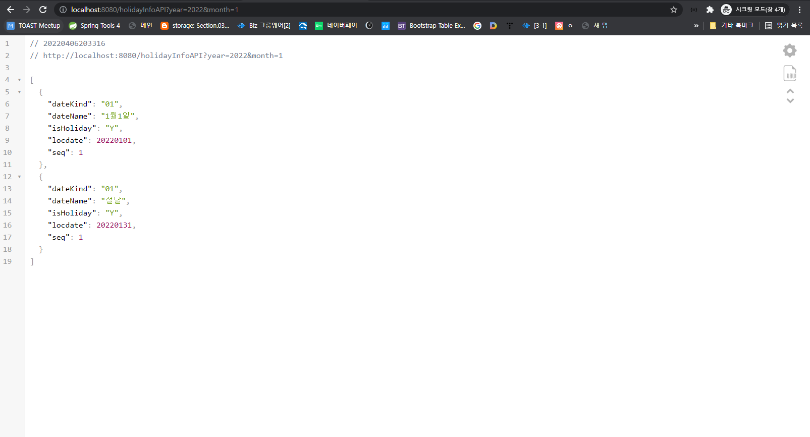 | [공공데이터활용] 공휴일 정보 가져오기(JAVA 버전) (0) | 2022.04.06 |