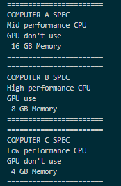 ComputerC 스펙 : Low Cpu, notUseGpu, FourGB
