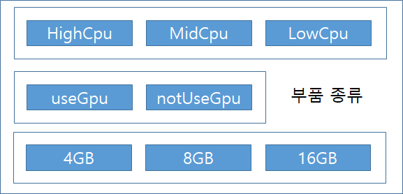 간단한 예제임으로 컴퓨터 부품은 CPU , GPU , Memory만 고려함.