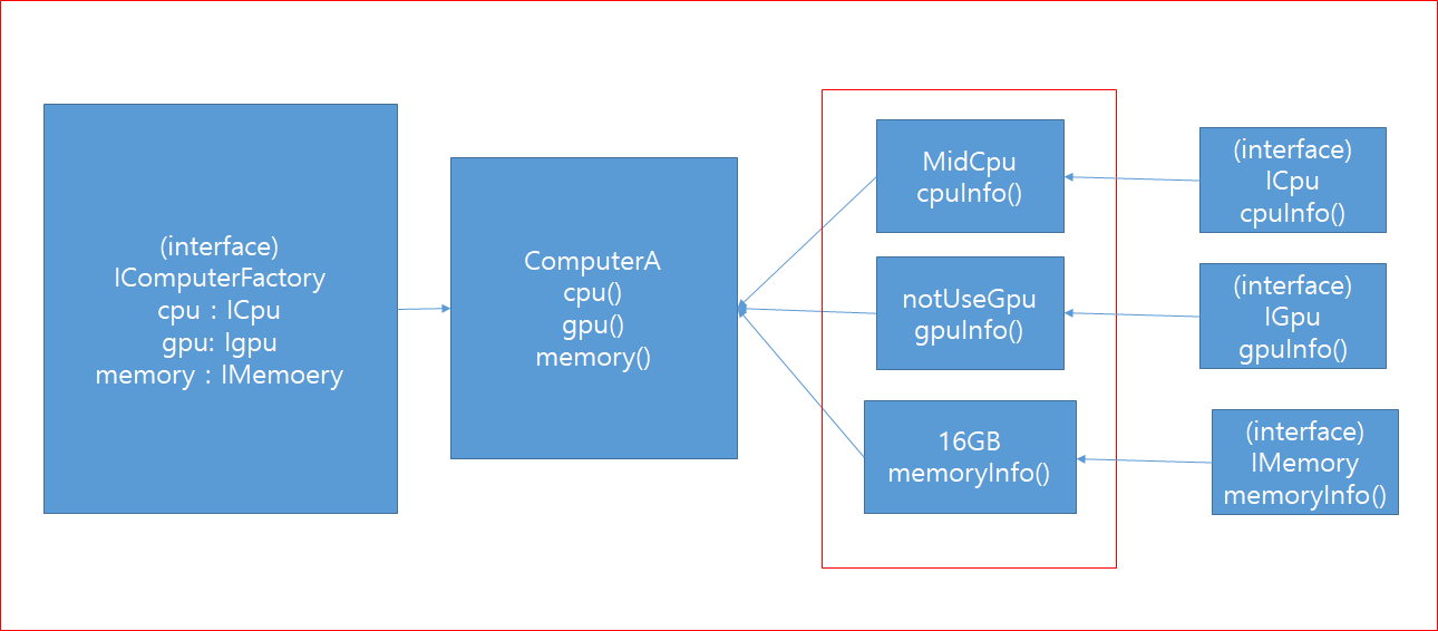 예를 들어서, ComputerA를 보면, Interface IComputerFactory를 ComputerA에서 인터페이스를 구현한다.